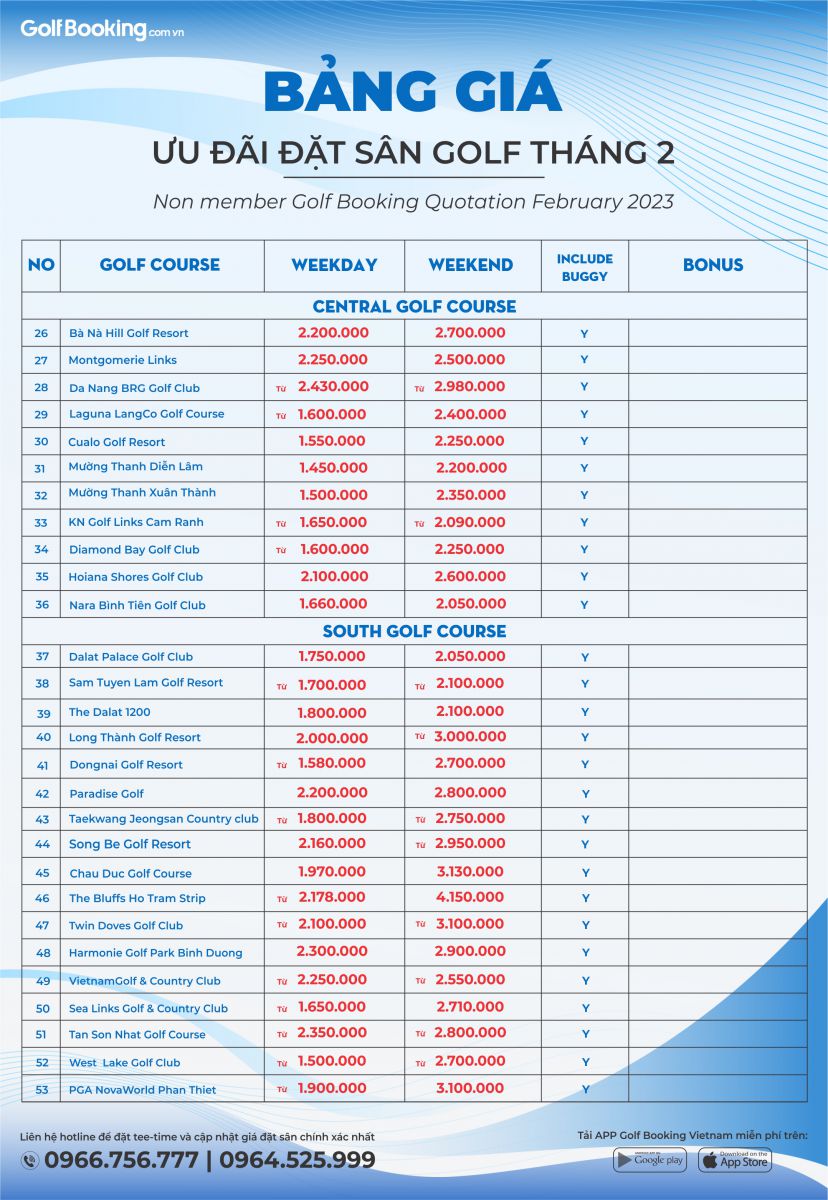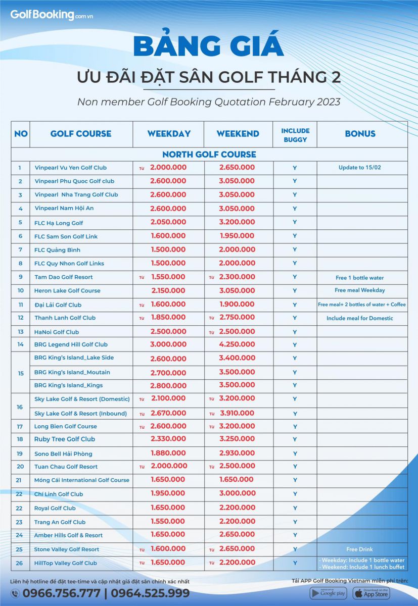 BẢNG GIÁ ƯU ĐÃI ĐẶT SÂN GOLF THÁNG 2
