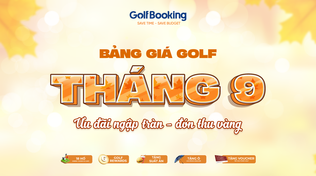 BẢNG GIÁ ĐẶT SÂN GOLF THÁNG 09.2025 Tiết trời trong xanh, nắng vàng nhẹ trải dài trên từng fairway - sẵn sàng cho mức giá ưu đãi cùng quà tặng hấp dẫn đang chờ bạn khám phá trong tháng 9 này – thời điểm lý tưởng để hội golfer lên sân tận hưởng trọn vẹn không khí thu sang.