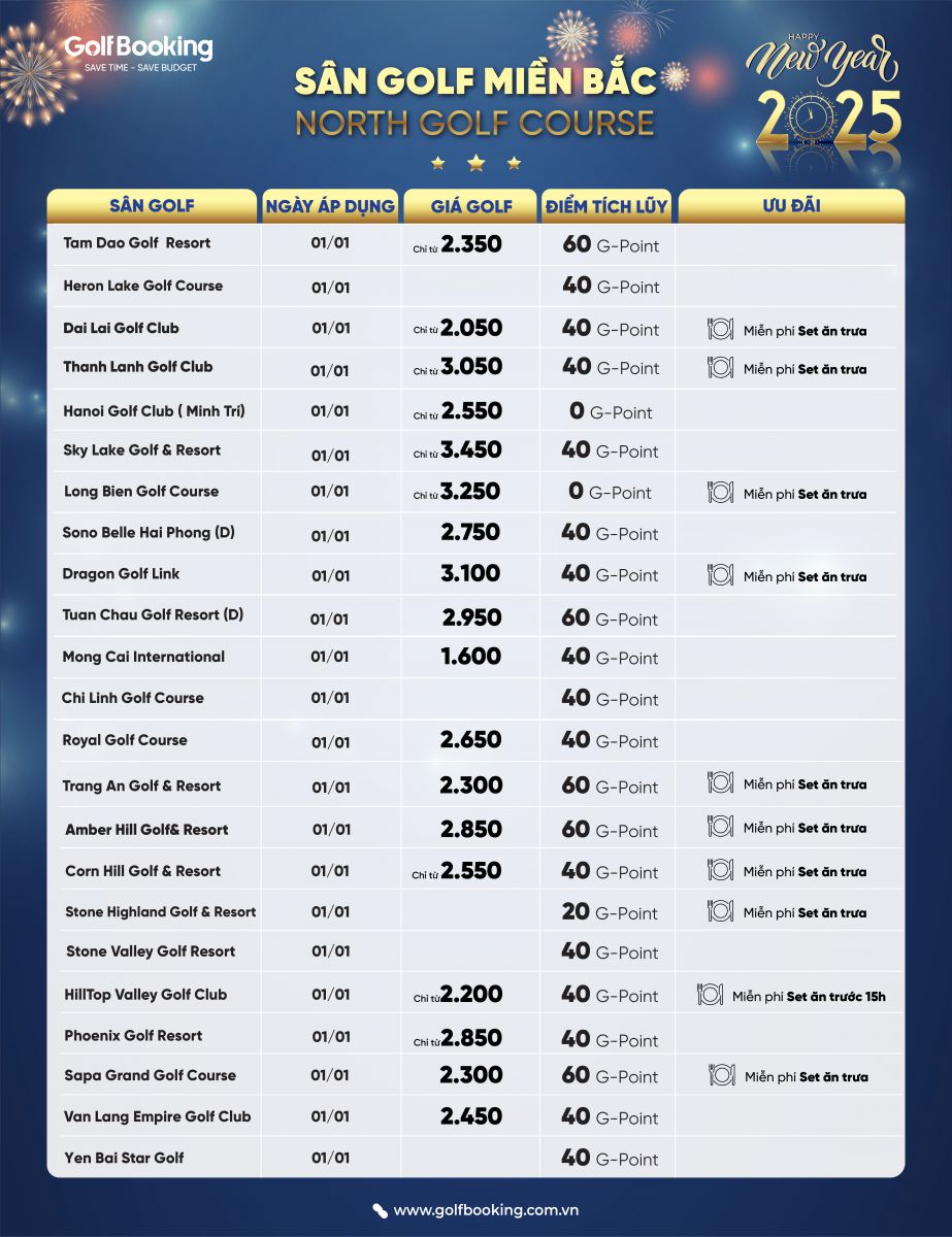Bảng giá đặt sân golf dịp Tết dương lịch miền Bắc