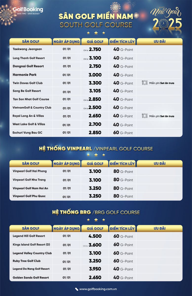 Chào đón năm mới 2025, đừng bỏ lỡ cơ hội là người đầu tiên swing "Khai sân" vào ngày đầu tiên của năm mới 01/01 tại các sân golf trên toàn quốc với giá đặt sân tốt nhất thị trường!