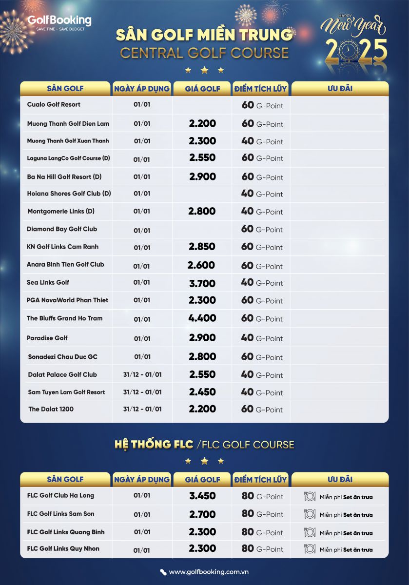 Bảng giá đặt sân golf dịp Tết dương lịch miền Trung & FLC