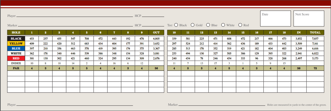 Giữa các hố golf đều có sự thay đổi độ cao khá hợp lý và có sự xuất hiện của những cây gỗ lớn hay những con suối nhỏ uốn lượn quanh co làm tăng mức độ khó khăn, hiểm trở cũng những hố golf. Sân golf par-72 này có chiều dài 7,595 yards khá thú vị ở chỗ vừa tạo thách thức nhưng cũng đem đến sự thư giãn, tận hưởng cho các golf thủ ở mọi trình độ. Sự thay đổi độ cao cũng như độ dốc khác nhau của mỗi hố khiến việc tính toán khoảng cách bóng lăn thường không chính xác. Điều này đòi hỏi golf thủ phải có những cú đánh đa dạng và có kỹ năng tốt trong suốt 18 hố.
