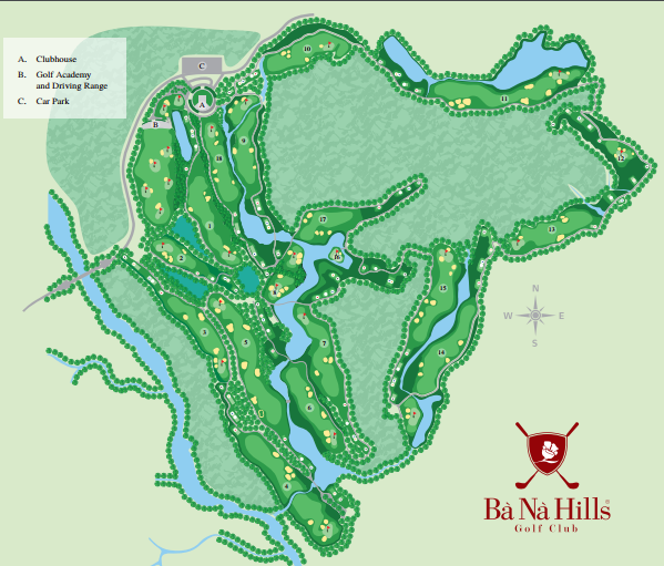 9 hố trước có hình dáng của một sân golf công viên truyền thống được bao quanh bởi rừng thông. Còn 9 hố sau lại khá dài và có địa hình lên xuống bao quanh núi với rất nhiều khúc ngoặt cũng nhau các cú đánh thường bị che tầm nhìn. Đó là những hố golf rất ấn tượng và đầy thử thách.