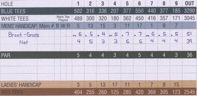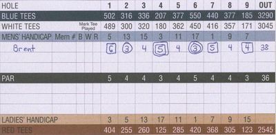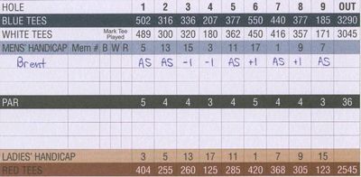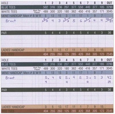 (Chúng tôi chỉ chụp 9 hố đầu trên scorecard để xem rõ số, các hình sau đây cũng sẽ như vậy).