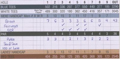 Bạn có thể liệt kê các đầu số liệu này bên dưới tên bạn trên scorecard, với fairway và green thì chỉ cần đánh dấu tích √ vào ô trống của hố tương ứng (fairway có nghĩa là tee shot bóng đáp xuống fairway; GIR – green in regulation, có nghĩa là bóng lên được mặt phẳng đẩy bóng chỉ trong 1 cú đánh đối với par 3, 2 cú đối với par 4, hoặc 3 cú đối với par 5). Số lần đẩy bóng mỗi hố thì chỉ cần đếm rồi ghi lại. (Chú ý: Theo tiêu chuẩn PGA Tour, chỉ những quả bóng đã nằm trên mặt phẳng đẩy bóng mới tính là cú đẩy, nếu bóng của bạn chưa lên mặt phẳng đó mà nằm ở rìa và bạn dùng gậy đẩy để đánh, thì cú đó vẫn không tính là cú đẩy, cần rạch ròi như vậy đối với mục đích thống kê).