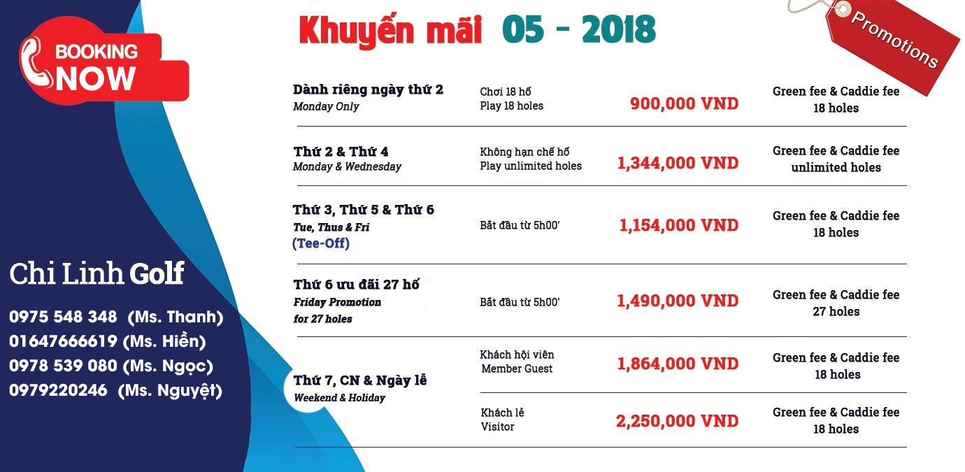 [Khuyến mại - PROMOTION] đặt sân golf - Đặt teetimes tại Chi Linh Golf Club tháng 5 - Promotion May - Golf Booking