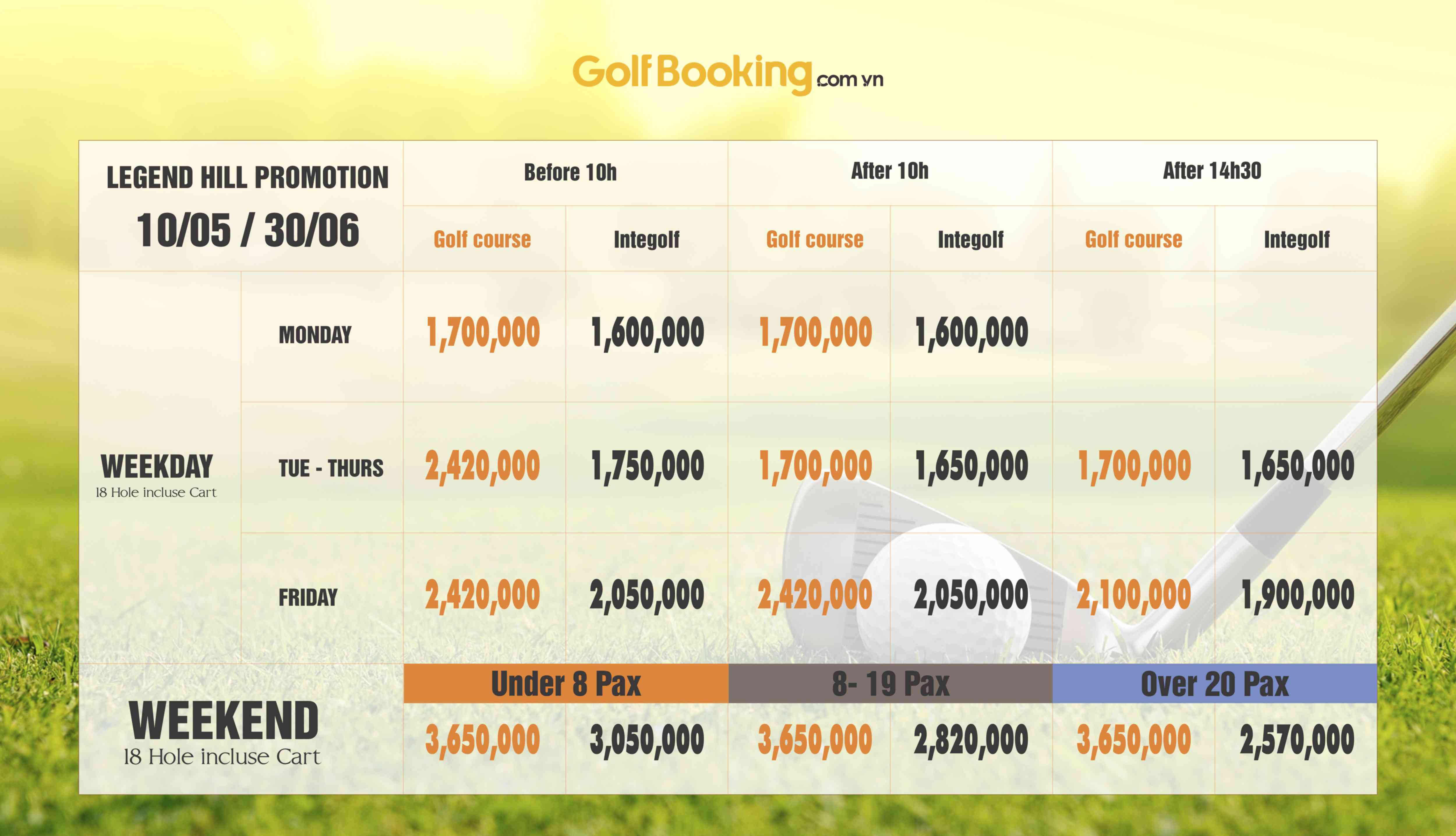 [PROMOTION - LEGEND HILL] Cập nhật khuyến mại tháng 5 và 6 sân golf LEGEND HILL
