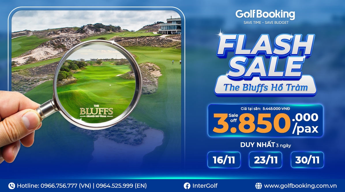 The Bluffs Hồ Tràm – một trong những sân golf ven biển đẹp và thách thức nhất Việt Nam – đang mở bán Flash Sale giới hạn với mức giá không thể hấp dẫn hơn. Đây là cơ hội tuyệt vời cho golfer muốn trải nghiệm địa hình links chuẩn quốc tế với chi phí cực kỳ tiết kiệm.