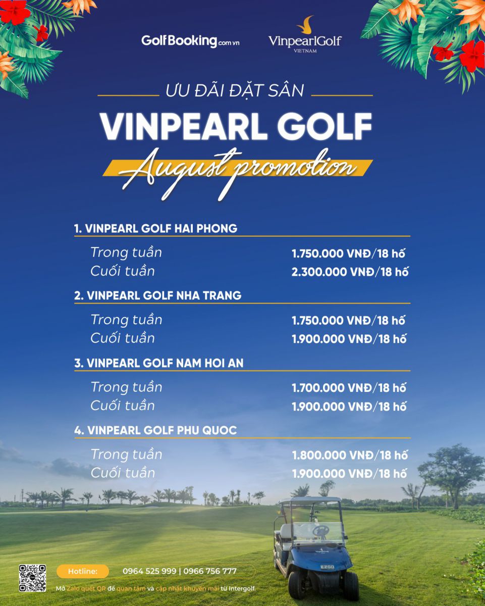 Tháng 8, bắt đầu mùa cao điểm, Intergolf gửi đến Quý golfer chương trình ưu đãi đặt sân Vinpearl chỉ từ 1.700.000 VNĐ/18 hố ( Đã bao gồm: Phí sân, caddie, phí xe điện)