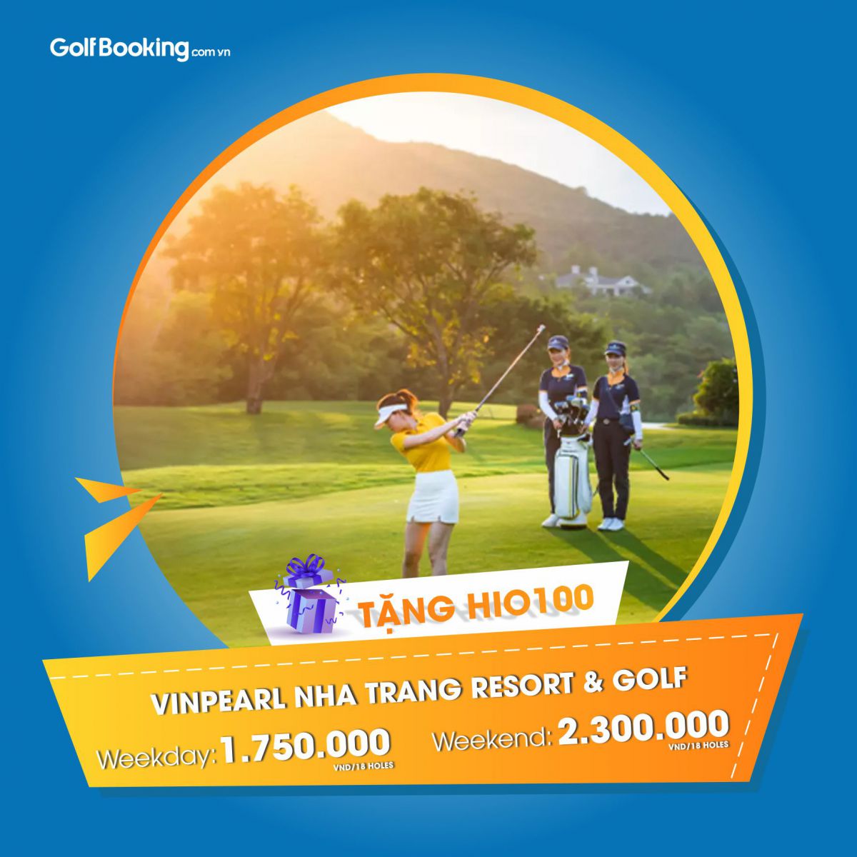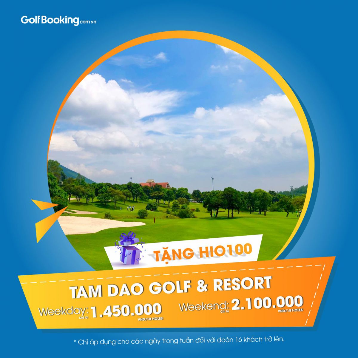 Một trong những sân golf lâu đời nhất Việt Nam, Khuyến mãi HIO100 chỉ áp dụng cho các ngày trong tuần có từ 16 khách trở lên. Giá đặt sân trong tuần chỉ từ 1.450.000 VNĐ/pax, cuối tuần chỉ từ 2.100.000 VNĐ/pax. Giá đặt sân vô cùng tốt cả trong và cuối tuần.