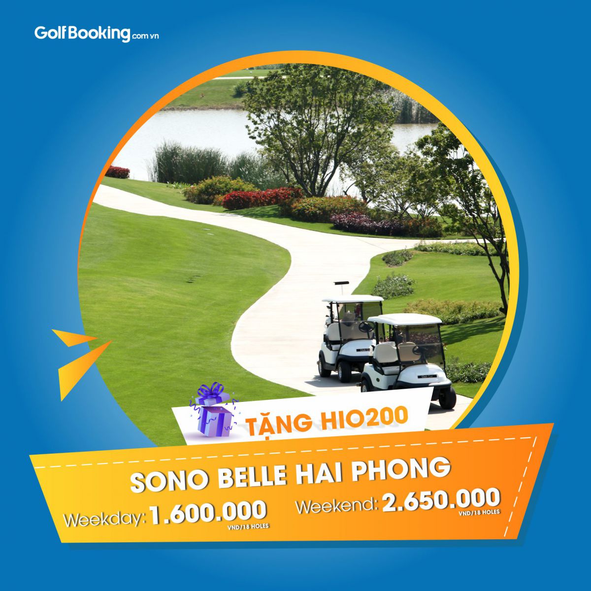 Một trong những sân nhà của golfer Hải Phòng, cách Hà Nội 115 km về phí Đông. Giá trong tuần: 1.600.000 VNĐ/pax, Cuối tuần: 2.650.000 VNĐ/pax. Tặng miễn phí HIO200 có giá trị giải thưởng tiền mặt là 200.000.000 VNĐ