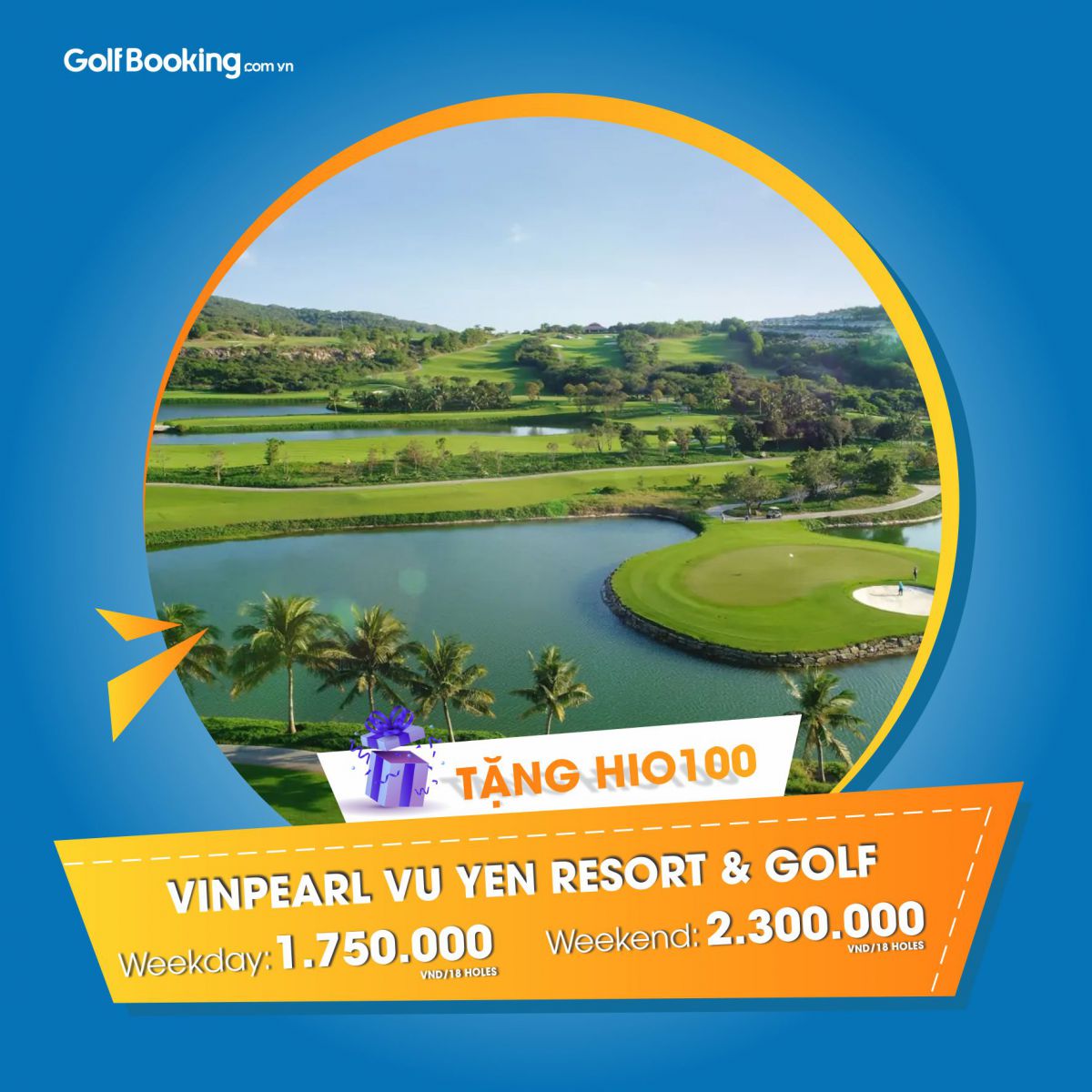 Tiếp tục là một thành viên trong cụm 3 sân golf của phố cảng Hải Phòng. Vinpearl Vũ Yên kết hợp cả golf, du lịch, nghỉ dưỡng cùng với các dịch vụ 5 cao cấp. Nhưng giá đặt sân thì rất hợp lý: Chỉ 1.750.000 VNĐ khi đặt sân trong tuần và 2.300.000 VNĐ cho các ngày cuối tuần. Tặng HIO100 cho tất cả các ngày trong và cuối tuần.