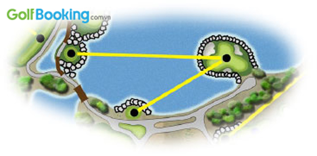 What makes Kings Course special is the 19th hole - there is no golf course in Vietnam. Players will stand on top of the waterfall to hit green on the island. The challenging Par 3 hole is referred to as "do or die". The green area is large enough but requires players to know to observe and hit accurately. Otherwise the likelihood of falling the lake and trapping sand is great.