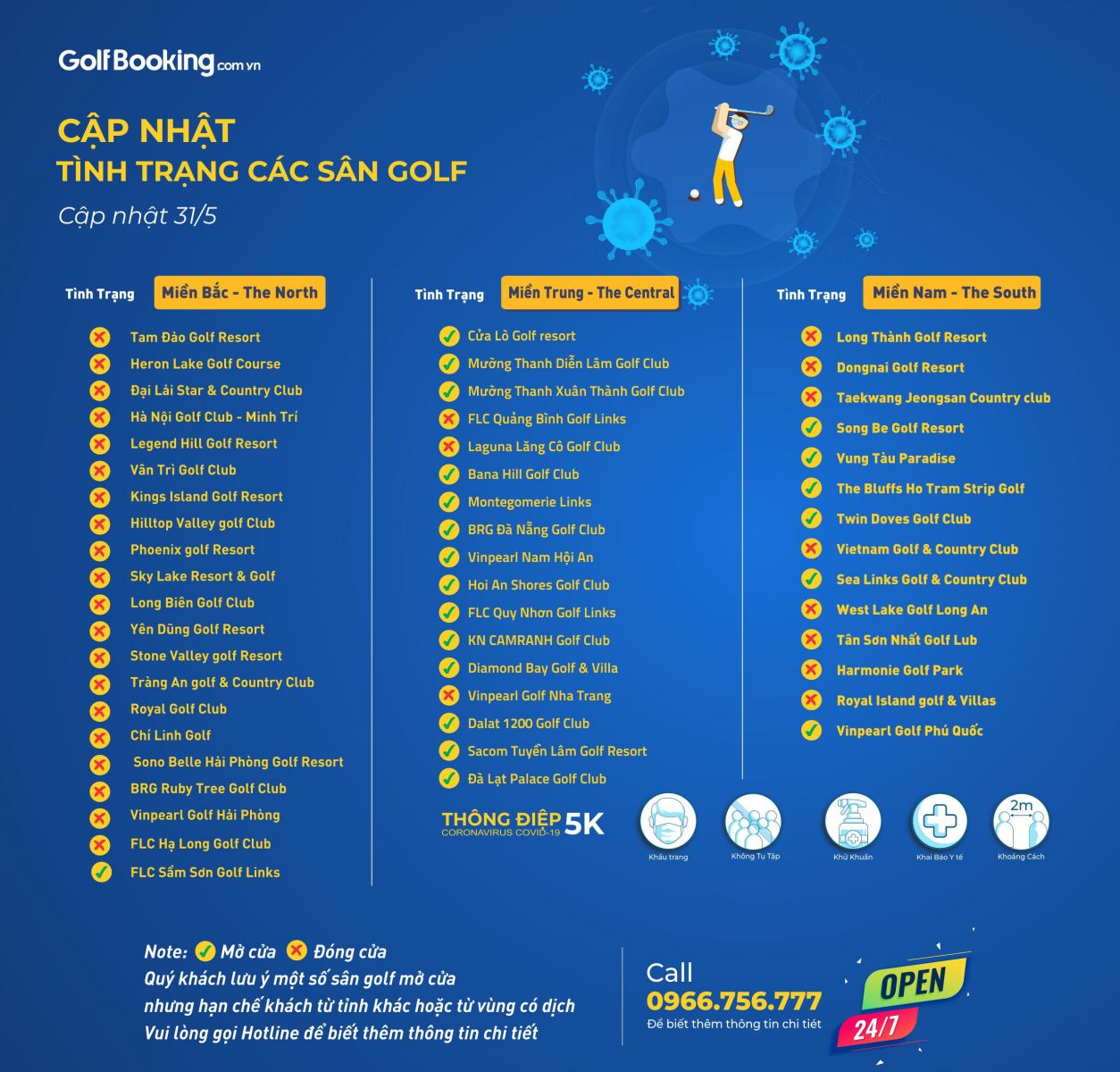 CẬP NHẬT TÌNH HÌNH HOẠT ĐỘNG HỆ THỐNG SÂN GOLF TRÊN TOÀN QUỐC